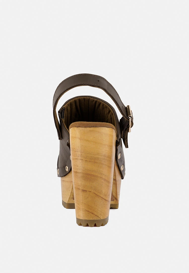 Hand chiseled raw natural wood set to perfect fitting along the feet curves – this pair of handcrafted high block heeled clogs is a delight! Made from Natural Soft Leather and lined with organic cotton lining, it looks beautiful with lined studs. The shoe is as natural and biodegradable as it can be. It has padded insole which cuts strain and relaxes the feet.