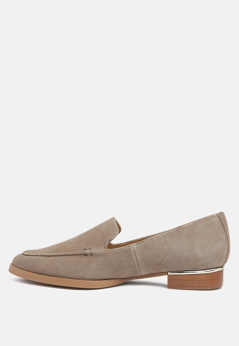 In soft Genuine Leather, this formal piece has metallic arc detail on the heel. Just the shoe you were looking to attend the next board room meeting! Looking for a no-nonsense and suave look at work? Get this pair of genuine soft suede loafers that get your feet warm and cozy. Pair it with wide-leg trousers and jackets to nail the perfect boardroom look.