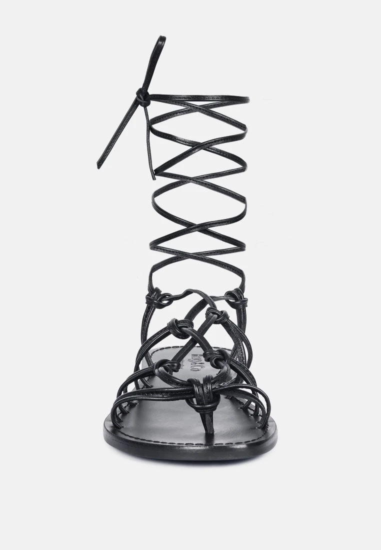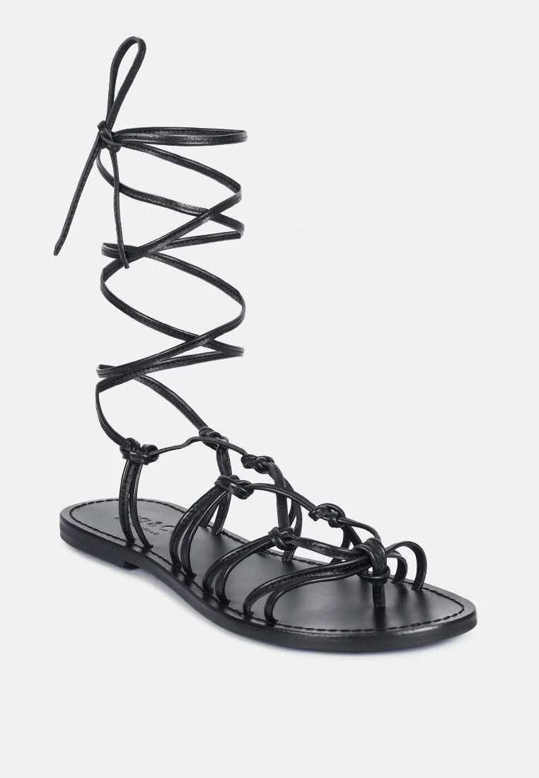 Summer Leather String flats with tie-up design. Grips feet well and is very comfortable. The style is available in three colors to choose from.