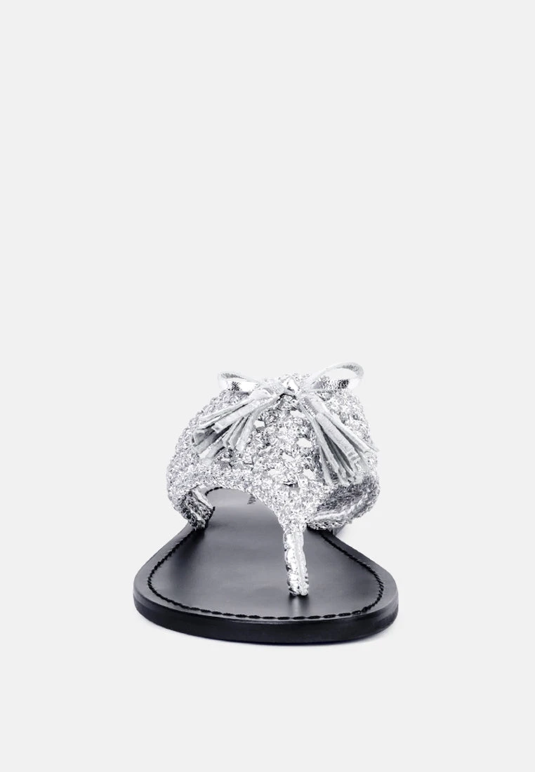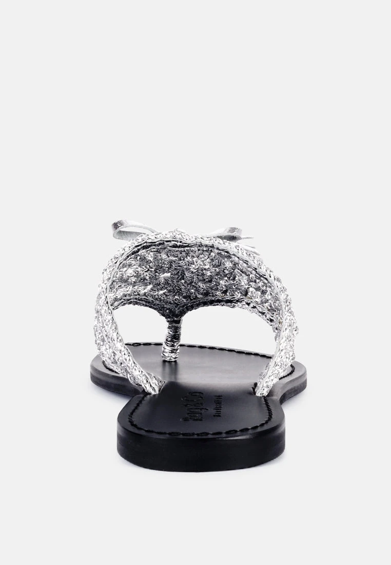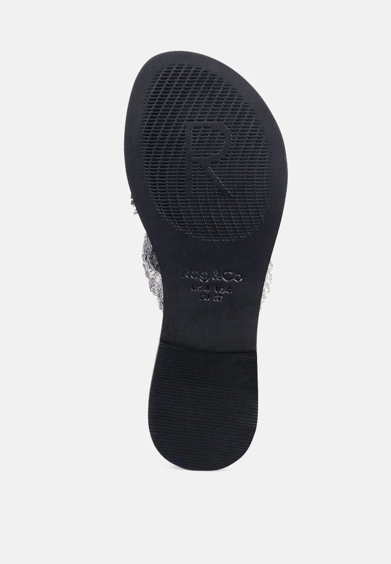 The Classic summer Thong flats with cotton woven structure with soft suede frame detail and the tassels at the top. The round toe open slides are casual, comfort shoes from Rag & Co.