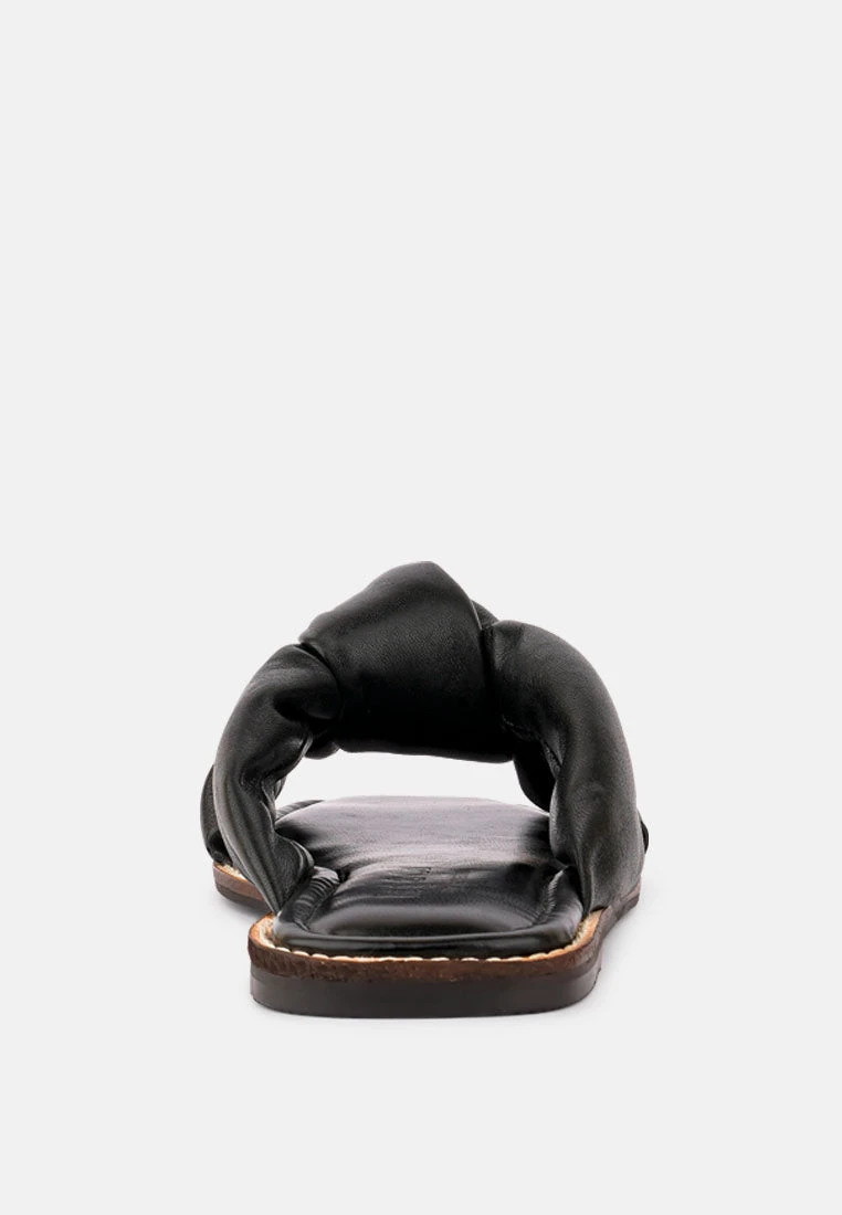 High Quality Leather in puffed straps which overwhelmingly styles your feet. This leather flat looks beautiful and has light cushioning added. A walking experience like no other for the woman, who loves a stroll or two in beautiful summer evenings!