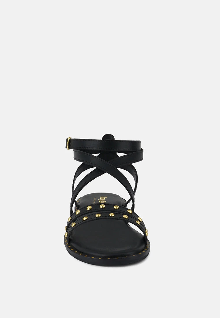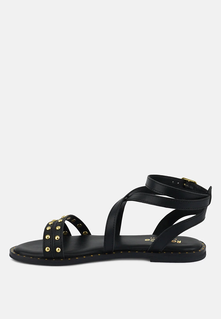 Elevate your everyday style with a classic flat sandal design that features metal studded straps on the front and tiny studs along the insole frame giving it a lovely finish. The Soft Padded insole will provide you with all-day comfort. The strappy ankle fastening with pin buckle secures feet well and is perfect for casual outings such as dates, brunch, etc.