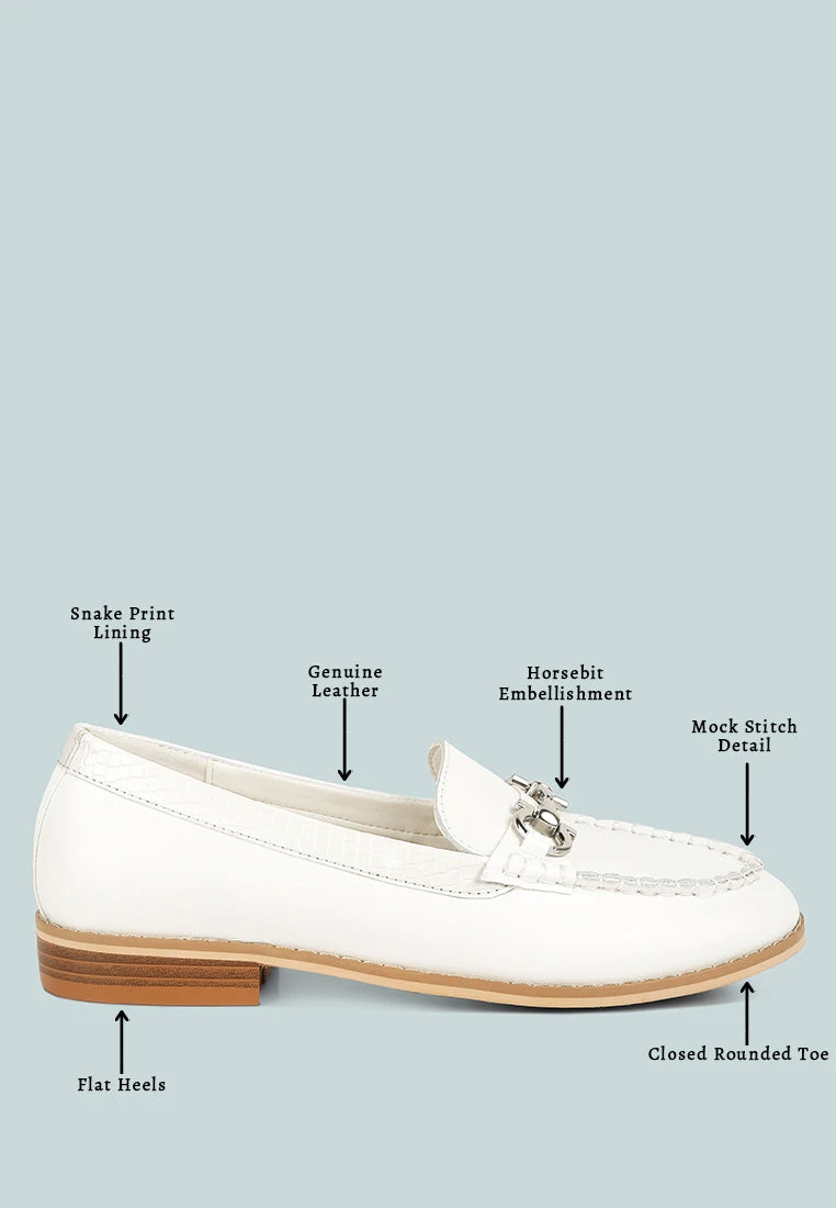 Vintage classic black loafers with flat heels and metallic horsebit embellished. The mock stitch detail adds a modern dimension to the classic favourite loafers.