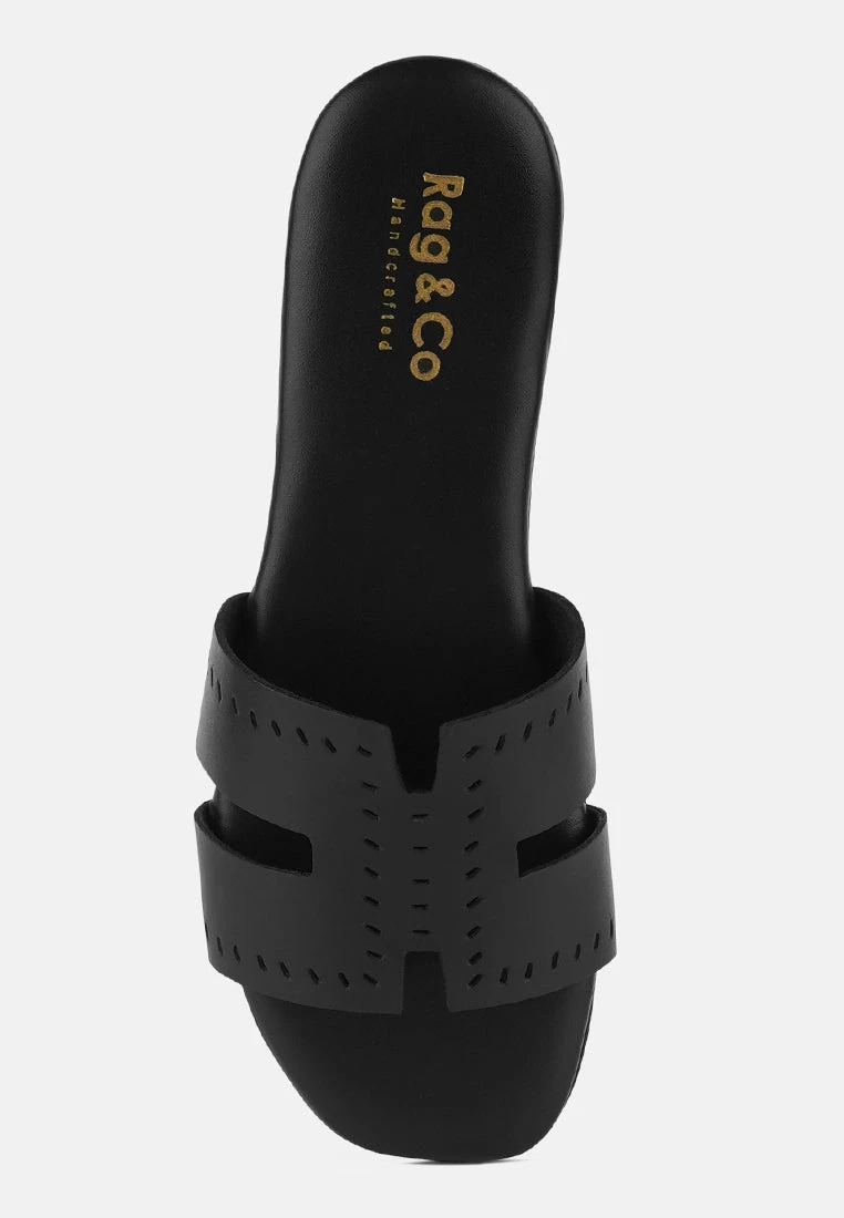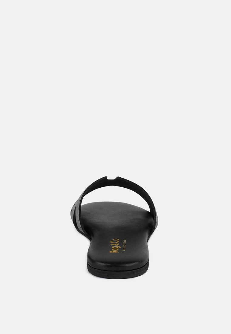 IVANKA Black Cut Out Slip On Sandals