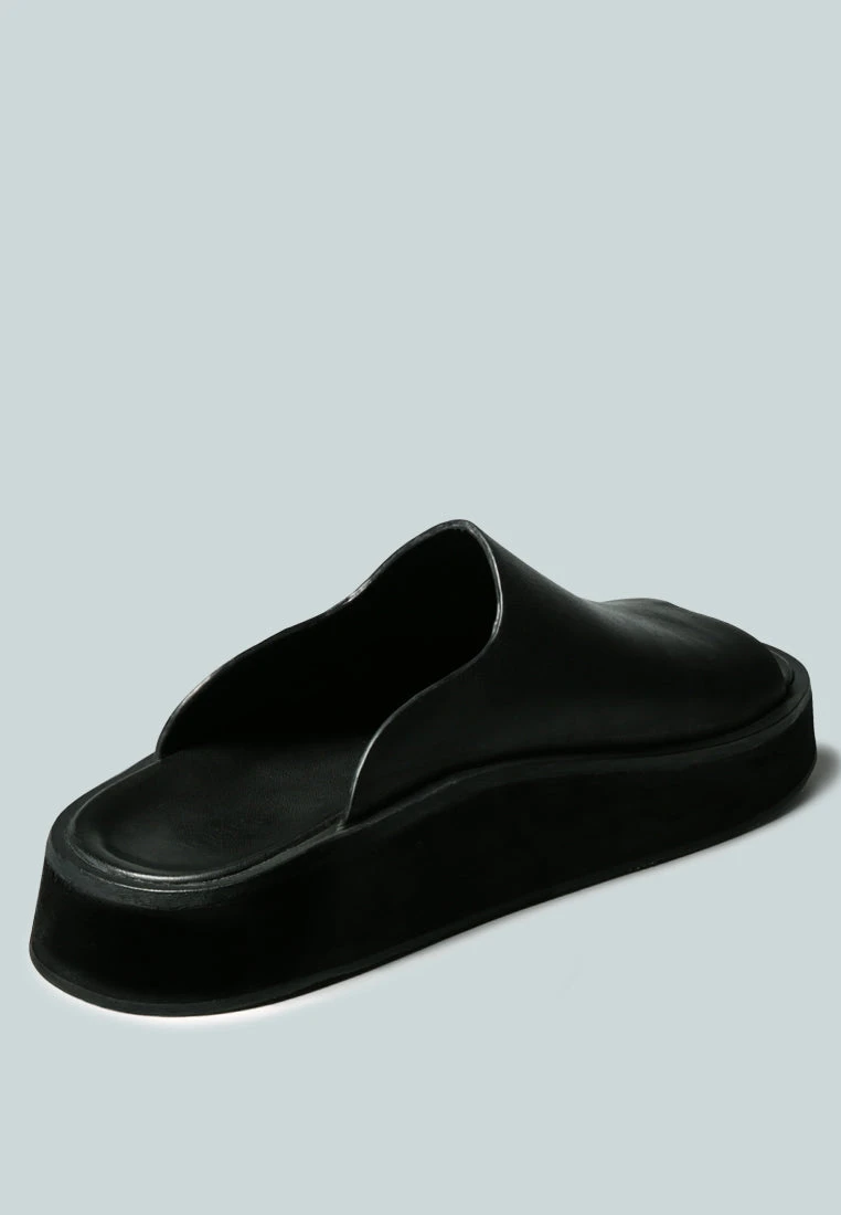 The Black Minimalist Slip-On with curved cuts and molded footbed for great comfort and grip. Handcrafted to perfection and aesthetical finish. For those who treat comfort as a necessary luxury – pair chunky platforms with a classic minimalist cut slip-on design.