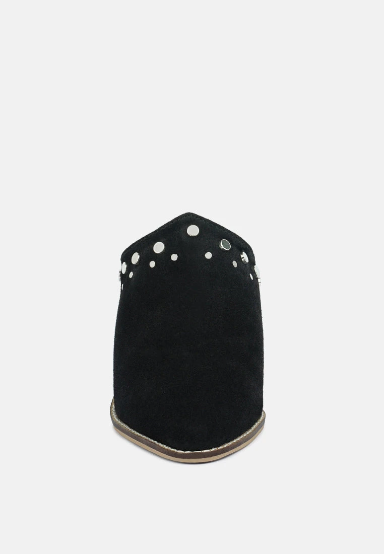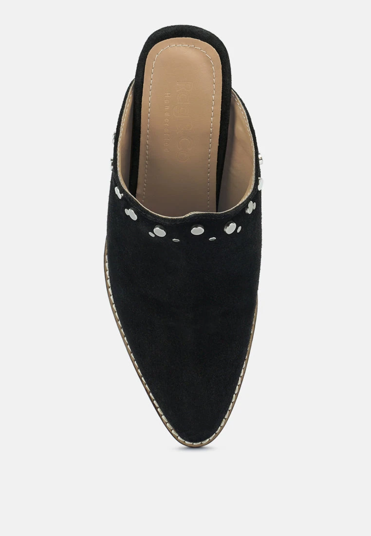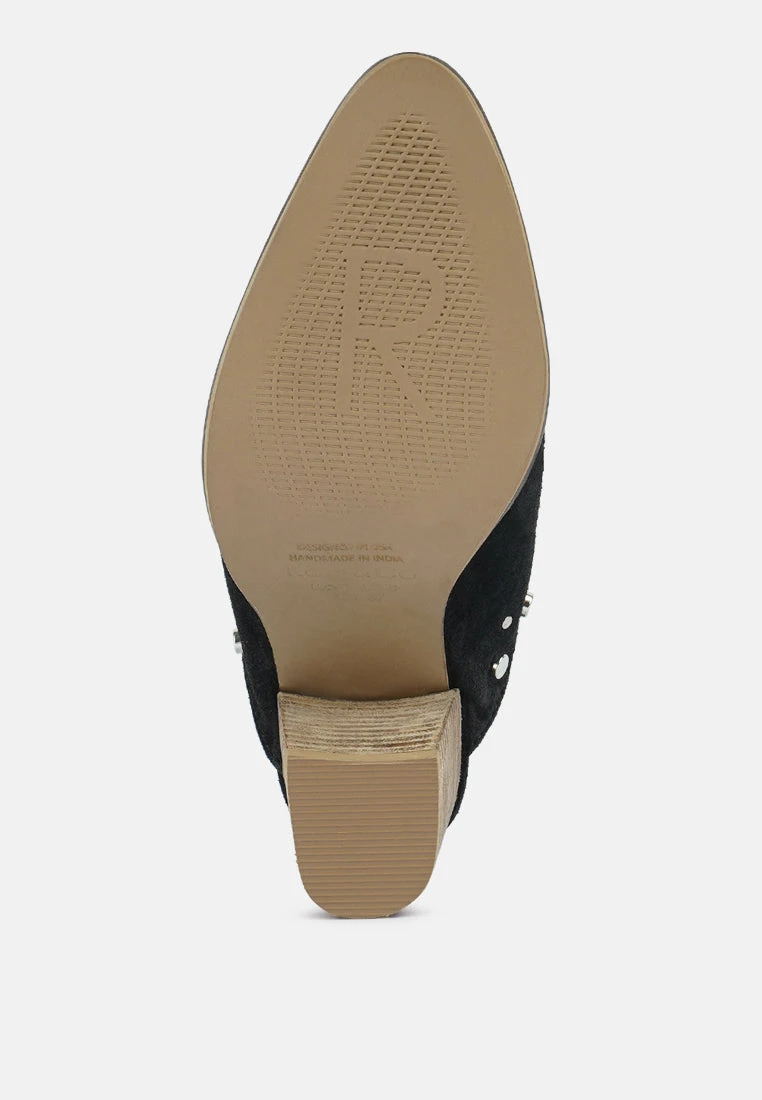 Stepping out in style has a new definition with this pair of mules. Featuring stylish studs & stacked heels which enhance its look, while its material will make you feel comfortable all day long.