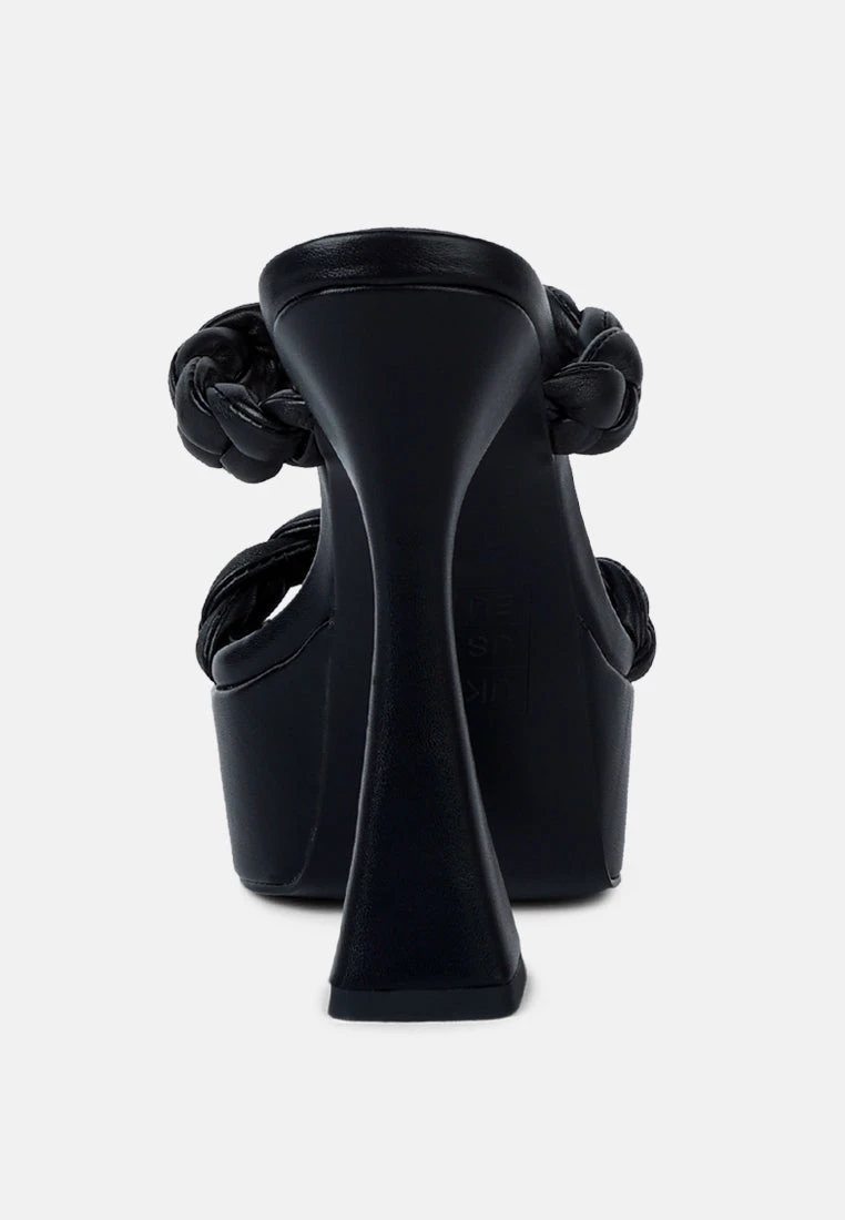 Stylish and bold – this style is theme of all shoe stories this summer. Soft Leatherette sandals with braided straps, the square cut toe sandal is crafted on raised platform which gives it an extra height.
